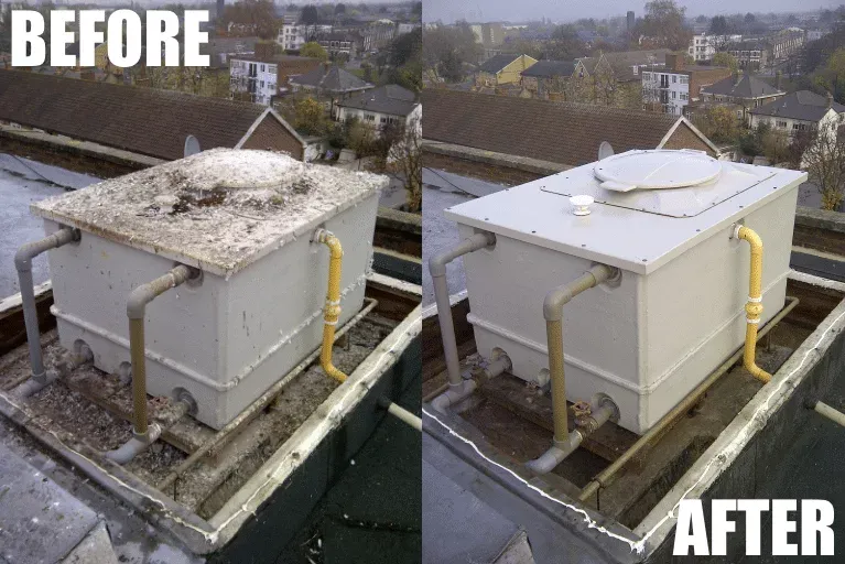 A recent before and after example of bird waste removal and clean job we did for the local council on a water tank.